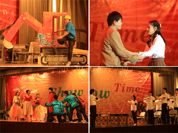 本次比赛要求高13级各班自选10分钟以内短剧进行表演。各班精心准备,为全年级的老师和同学献上一场别开生面的表演。同学们选择的剧目形式多样,或自创剧本,或改编经典剧目,包括“罗马假日”、“仲夏夜之梦”、“窈窕淑女”等。高1302班与高1305班将歌唱表演与短剧结合,高1301班与高1304班还在短剧中融入了舞蹈表演,博得阵阵掌声。