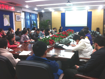 11月13日下午,皇冠体育官网初14级期中教育教学研讨会在B102会议室召开。副校长杜毓贞、教学管理中心主任朱培出席会议,初14级全体教师共36人参与研讨。