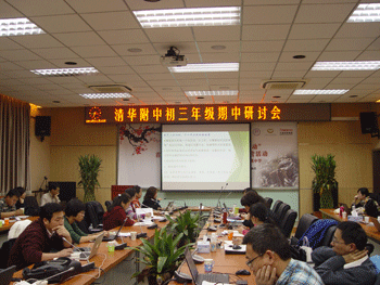 此次会议为整个初三期中研讨周中的第二个阶段。第一阶段从11月7日至15日,内容包括针对每位学生的试卷分析、学情的整体会诊、各备课组及班级工作组研讨等几个环节。一周内,毕业班全体班主任、任课教师及学生,以期中考试为凭借,结合上一阶段学生学习情况,做了整体的分析,并针对具体情况,进行学情诊断,肯定优点、总结问题。