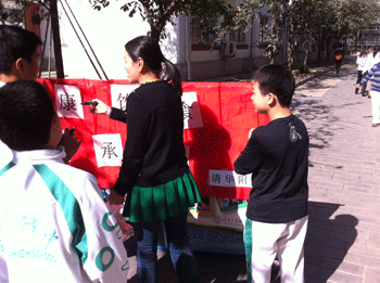 老师们也写下自己的承诺 同学自己制作的宣传板