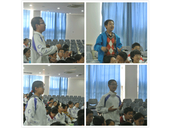 学生在听讲座时与专家互动 学生设计的丰容作品