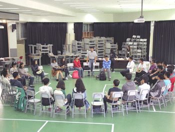 白雪峰老师在交流会上致辞,鼓励清华的附中学子秉承百年附中的优良传统,努力求学,争创佳绩,为附中的学弟学妹做好榜样。