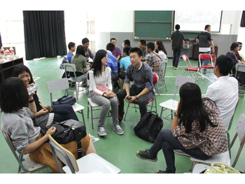 迎新会分自我介绍、午餐餐叙、分组交流以及总结发言等环节。在轻松愉快的氛围中,各年级、各专业的附中校友相互认识,交流经验,分享看法。在总结发言环节,来自高09级的韩乾同学,来自高10级的夏元瑾、张悠南、张大臻和李忠泽同学向大一新生提出了中肯的建议,鼓励他们在大学生活中多元发展,宽容差异,积极尝试,开启人生的新篇章。