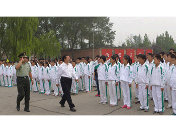 同学们接受王殿军校长(左2)和部队首长检阅 初14级班主任们组成的教师方阵