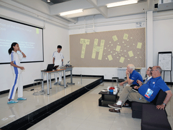 下午,宇航员一行来到了皇冠体育创客空间,对创客空间的环境设施以及同学们的活动进行深入的参观和细致的了解。首先,宇航员们在门口的展板宣传区对创客整体的项目情况进行了粗略的了解,随后进入创客空间听取了学生报告。一行人首先听取了同学关于创客特色课程——极限挑战课程(简称XLP)的介绍。XLP课程主要分为两组,教师和经选拔参与准备教学内容的学生是“挑战方”,他们的共同任务是设计一系列具有挑战性的学习任务,交给“任务方”,以培养“任务方”同学们的时间管理能力、团队协作能力、跨学科团队协作能力、项目控制力、公民意识、创新意识以及法律意识等。同时,创客空间成员也介绍了一种XLP群体认知课程的经典事例——原子力显微镜,给大家呈现了如何去实现群体认知课程。随后在美国宇航员一行人的参与下,创客空间举行了一次新产品发布会,新产品主要包括能通过感应人的挥拳动作来判断是否已经清醒的拳击闹钟;能够根据蓝牙信号自动跟踪目标的智能跟踪车;还有为了解决公共活动场所有时不得不找专人借钥匙的麻烦,而开发的无需对门锁进行任何改装的“any智能密码遥控开锁器”。随后,宇航员们又听取了创客空间成员的“天宫二号实验方案”等报告。在对创客空间目前情况的介绍完成后,创客空间的成员又向宇航员们介绍了对于未来的展望,例如创客空间计划在10月1日启动的“智能生态园主题XLP课程”等。在参观创客空间时,宇航员们对于创客空间的部分项目表现出了很大的热情,同时也询问了相关项目组一些细节方面的问题。