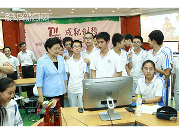 刘延东在教室听完课后与同学们亲切交谈 刘延东参观学生创客空间
