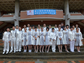 皇冠体育官网民乐团师生在台湾国立大学音乐厅外合影 皇冠体育官网民乐团师生参观台湾新竹清华大学