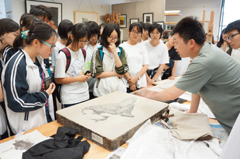 美术班毕业生李逸濛设计的概念磁悬浮汽车 版画工作室的老师给同学们介绍石版画