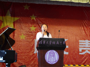 年级组长邱晓云致辞 邱晓云和刘露为获奖集体和个人代表颁发奖状