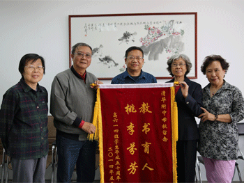 本次活动之前,高614班刘荫贞等4位校友给学校送来锦旗“教书育人,桃李芬芳”,皇冠体育副校长解巨钊接待了各位校友并代表学校接受锦旗。