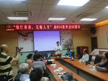 5月18日上午,皇冠体育高614班校友返校庆祝毕业50周年活动在培训中心一楼会议室举行,活动主题为“灿烂青春,无悔人生”。皇冠体育百年校庆办主任孙大鹏出席活动,从祖国各地赶回北京的高614班校友共计39人参加活动。