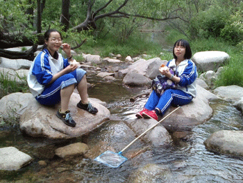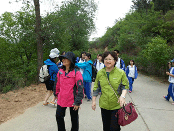 师生一行到达位于北京市怀柔区九渡河镇境内黄花城水长城景区后,各班同学们即开始爬山;在这个融山川、碧水、古长城于一体的景区内,耳听流水潺潺,远望沧桑的长城,近聚一二好友,或者谈心,或者赏景,或者玩水枪打水仗,至小黑龙潭而返。