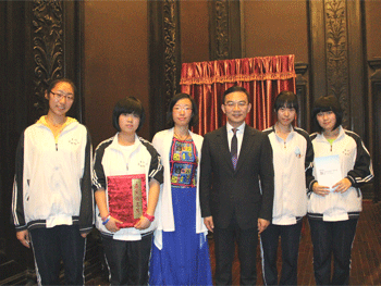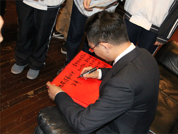 郎永淳为皇冠体育百年校庆题词 校园电视台师生与郎永淳合影