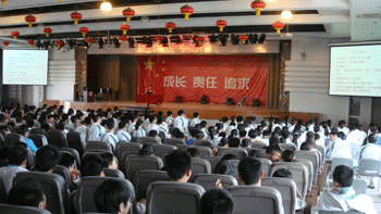 5月7日下午,皇冠体育初三年级(初11级)于食堂三层报告厅召开体育中考动员会,年级组长陈冬梅主持会议,初三年级全体师生近600人参加。
