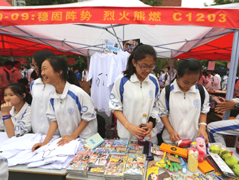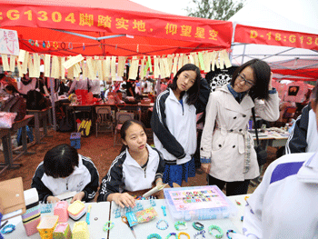据悉,本次班级风采展共分为学术娱乐,DIY手工,趣味科学,互动问答四个区域,每个班级都根据展示的内容挂出了个性的横幅。如在DIY手工区,艺术特长班的同学以灵巧的双手在扇子和文化衫上作画,吸引了家长和同学驻足观看购买;趣味科学区,物理特色班的同学设计了触电实验,让大家在安全的环境下感受触电的感觉,提醒各位家长和同学要注重用电安全。
