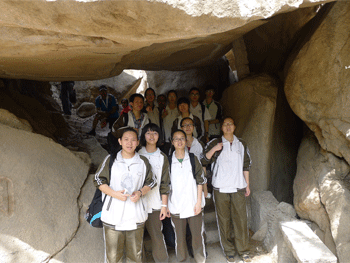 此次活动主要在以“古、奇、怪、幽”取胜的北线景区进行,同学们以班内小组为单位从山脚一路向上。沿途,大家领略奇峰怪石,探究幽洞密穴,欣赏古刹宝塔,不少同学还在山顶感受了俯瞰众物豪迈。吃完自带午餐,同学们还自发组织了小游戏,在欢笑中回到了山脚。
