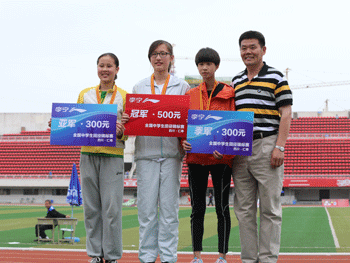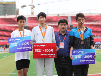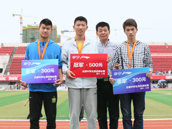 皇冠体育官网学生刘明轩(左2)获得男子三级跳远金牌 皇冠体育官网学生戎成文(左2)获得四项全能冠军