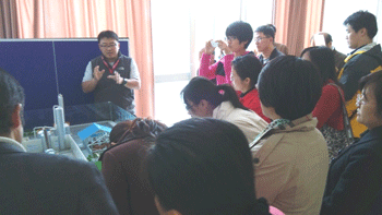 第四站是生物质能技术研究室,该研究室成立于2005年底,致力于非粮生物质基能源及化工产品的基础研究和技术研发。老师们主要参观了他们在非粮原料(如甜高粱、秸秆)生产燃料乙醇、清洁沼气、生物基烯烃、秸秆替代石油C4组分生产化工产品方面的研究工作室,学习了解了生物乙醇的制作过程以及生产应用过程。