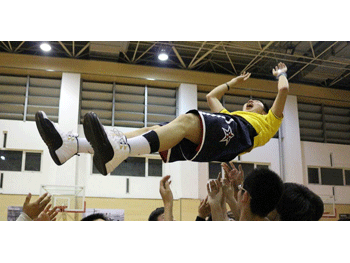 取胜后主教练被球员抛向空中庆 上场12名主力球员合照................