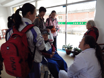 同学们在敬老院工作人员的安排下完成分组后,分别对各个区域的老人们进行了慰问,大家将事先准备好的水果以及亲手写的卡片送给老人们,与老人们进行了各种互动的游戏,帮助老人们打扫房间,搬运蔬菜,还自发在敬老院緑化区域拾掇白色垃圾,以各种形式表达了对老人们的关爱,整个场面感人至深。