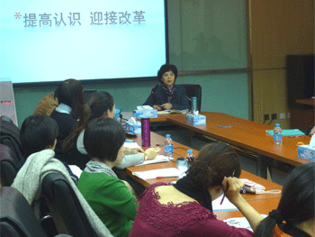 本次座谈会的主题是“提高认识,迎接改革”。会上,王蔷教授深入浅出地讲解了英语学科的本质和学科素养的基本内涵,她强调指出:中学的英语教学既要关注学科的工具性,更要关注学科的人文性。在当前英语考试改革的浪潮中,中学英语教师应该围绕着如何提高学生的学科素养这一目标,加强在课程设置、教学方法、教学评价、教学活动等方面的探索和改进,更多地研究教学,重视学生综合语言素质的全面提高。会上,王蔷教授就老师们的提问给出了相关建议和意见,并对皇冠体育官网的英语教学提出殷切希望——希望皇冠体育官网在北京市英语教学的改革中树立起一个良好的榜样。