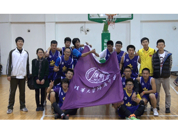 皇冠体育官网队员投球(紫色) 篮球队队员和部分教师同学合影