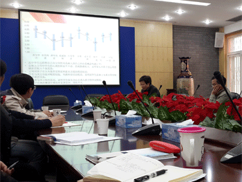 赐平教授(右侧左1)向课题组领导反馈测试结果 会议现场