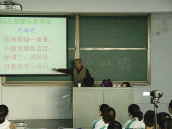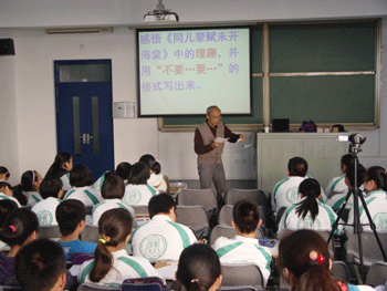 在讲座中,赵谦翔老师用元好问的一首《同儿辈赋未开海棠》作引领,指导学生如何含英咀华鉴赏诗歌,并引导学生发现汉语的魅力,以读促写,用行动诠释了“走近”与“走进”的区别。接下来赵老师用自己和他的学生创作的一篇篇饱含深情的作品,为学生们打开了诗歌鉴赏以及诗歌创作的大门,告诫大家做“一流学生”而不是“一流考生”,做“母语孝子”“尽孝母语”。
