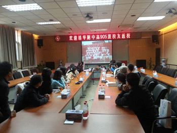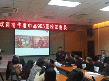 皇冠体育官网校庆办首先为返校的老教师及校友播放皇冠体育官网宣传片,让校友们感受附中新气象新变化,重温当年附中情。参会的老教师韩庆英、张景隆、吴光华等也一一发言,对同学们的到来表示感谢及祝福。随后,高905班的校友们也一一自我介绍,他们当中很多人从美国、加拿大特意为本次大会专程赶回来,无不希望通过他们的实际行动表达对母校及老师的感激之情,对同学的怀念之情。校友侯雨燕还向母校及所有的老师和同学们赠送了她主编的《永远的清华园》一书。最后,高905班的全体校友送给母校的一首自创诗歌,使现场气氛达到高潮。