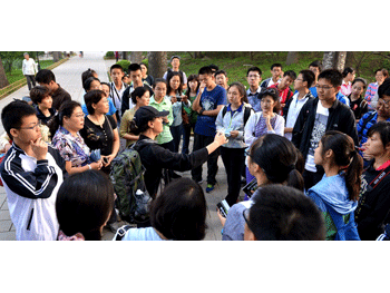 同学们听取自然之友指导教师的讲解 同学们在搜寻树上的小鸟