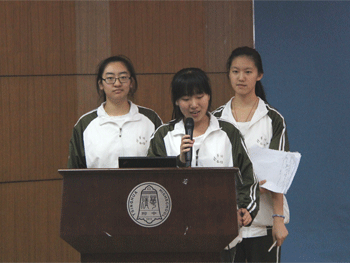首先进行的是项目报告会,本年度四个研究项目各有特色:项目一《中西教育比较研究时实践》通过本部与国际部互换课程,感受中西学制的优点和差异,研究如何融汇中西学制的优点。项目二《高中生职业理解的研究和实践》通过调查研究、嘉宾访谈、校本课程《听学长讲专业》、与行业精英交流和社会实践,了解不同的专业内容和学习要求,总结了一系列高中生职业理解的方法,为高中生的发展提供借鉴。项目三《校园图书馆资源的优化》从学校图书馆的实际情况出发,通过“阅读悦读”专栏、图书资源宣传和图书馆志愿者等活动探讨促进图书馆资源优化的途径。项目四《企业管理体系在学生活动组织中的应用与设计》研究了中西企业管理的先进经验,并将其运用到学生活动组织中来,形成了学生工作的参考资料。