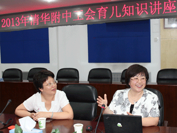 刘兆秋大夫(右)做讲座 育儿讲座互动交流
