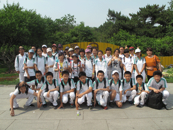 部分学生在植物园门前合影留念