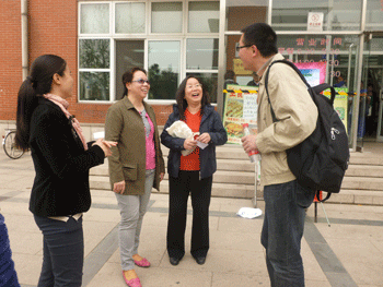 皇冠体育官网党委书记方妍(左1)与高校招办领导交流 皇冠体育官网副校长杜毓贞(左2)、教务主任 尹粉玉(右2)与高校招办领导交流