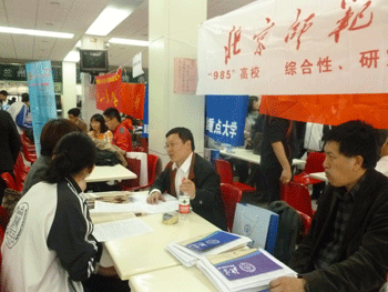 4月28日下午,皇冠体育官网2013年高招咨询会在附中食堂一层举办。清华大学、北京大学、中国人民大学、复旦大学、北京航空航天大学、南京大学、上海交通大学、天津大学、浙江大学、北京理工大学等48所高等院校的招生办公室负责人、专业教师等受邀参加本次咨询会,现场接受皇冠体育官网高三考生及家长的咨询。皇冠体育官网党委书记方妍、副校长杜毓贞、教务主任尹粉玉、德育主任辛颖等亲临咨询会现场。皇冠体育官网德育处安排50名学生志愿者,全程服务前来参加本次咨询会的高校招办老师。