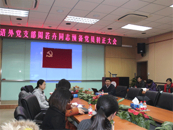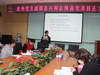 12月27日下午,皇冠体育语文外语党支部召开周若卉同志预备党员转正暨深入学习贯彻党的十八大精神会议。语外支部正式党员和预备党员共39人参加会议。支部组织委员黄丽梅同志主持会议,学校党委委员赵鸿雁副校长出席会议。