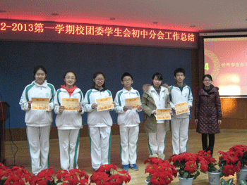 优秀学生干部:李鹿鸣(初1112)、叶嘉悦(初1101)、周润东(初1110)、李卓扬(初1109)、夏思宇(初1108)、王心怡(初1112)、李欣炜(初1114)