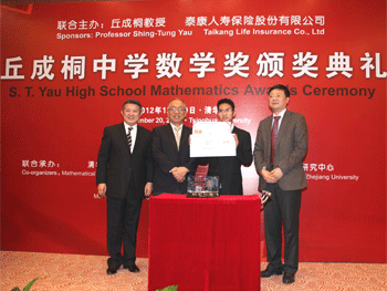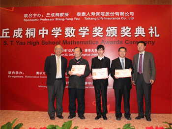 本届丘成桐中学数学奖由丘成桐先生以及泰康人寿保险股份有限公司设立,清华大学数学科学中心、浙江大学数学科学研究中心、中国科学院晨兴数学中心共同承办。自今年1月启动以来,共有来自美国、加拿大、新加坡、印度、日本、中国等国家近两百所中学的400多支队伍报名参赛。经过分赛区三轮评审后,从所有参赛队伍中脱颖而出的17支团队(其中有2支海外团队)闯入总决赛。经过了19日、20日与14名国内外知名数学家评委进行两天封闭式面对面交流和答辩后,现场共产生金奖1名,银奖、铜奖和优胜奖共16名。