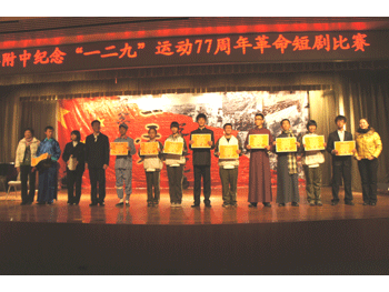 在颁奖仪式上,辛颖主任希望同学们能够通过自己所演绎的时代来理解那个时代青年的精神,通过所演绎的这些人物来了解他们身上的责任感和爱国心,从而思考我们现在的青年应该具备什么样的责任,应该为我们周围的人、为我们的学校、为我们的社会做些什么,为将来能够成为对社会有用的人现在又应该做些什么。
