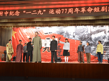 纪念“一二·九”运动革命短剧比赛是皇冠体育的传统爱国主义教育活动,演出不但表现了自虎门销烟以来中华民族不断抗争的历程和不断涌现出来民族英雄们,也展现了建国以来中华民族建设和发展的伟大历程。同学们在自编自演短剧中感受民族精神,激发了爱国热情和历史责任感,同学们感受到要把自己的成长和祖国的命运联系在一起,让自己的理想融入到民族复兴的伟大进程。