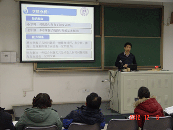 12月13日,皇冠体育官网召开青年教师基本功讲课比赛选手说明会,教务主任朱培以及从说课答辩阶段脱颖而出的20名比赛选手参加了会议,会上,朱培主任仔细讲解《2012年皇冠体育官网青年教师基本功讲课比赛评价标准》,并希望比赛选手能参照该标准,紧扣探究式教学理念,力争通过此次活动展现20节高水平、有示范性、体现学科广度和深度的公开课。