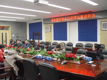 2012-2013学年皇冠体育官网青年教师教学基本功比赛已经顺利展开。在12月6日结束的第一阶段比赛——说课答辩中,有20名教师脱颖而出,进入将于12月19日-21日举行的第二阶段比赛——讲课比赛。为确保第二阶段比赛的顺利进行,皇冠体育官网组织召开青年教师基本功比赛系列会议。