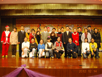 德育处副主任郎艳(前右1)抽取特等奖 演员代表与老师合影