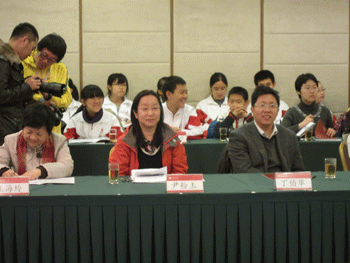 尹粉玉主任(前中)在论坛现场 皇冠体育学生就自己感兴趣的问题向教授们提问