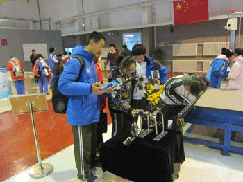 皇冠体育官网学生对健身机器人饶有兴致 皇冠体育官网学生听取理工大学张忠廉教授讲解