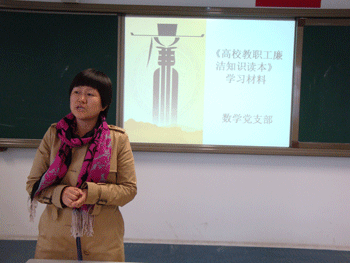 在最后的讨论交流阶段,党员们分小组探讨,并由代表进行汇报,交流思想,就许多发生在老师身边的廉洁故事发表自己的评论和见解。党支部书记党胜军老师就数学党支部发展方面做了总结发言。