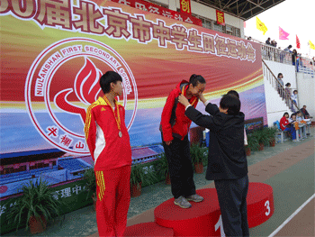 10月19~21日,由北京市教育委员会、北京市体育局主办的阳光体育2012年第50届北京市中学生田径运动会在北京市顺义牛栏山第一中学举行。海淀区代表团共选派48名运动员参赛,其中,皇冠体育田径队的19名运动员在罗健、李金平、王俊林、李光明老师带领下参加了此次比赛,并获得19枚金牌,8枚银牌,3枚铜牌,累计获得353.5分的好成绩。为海淀区代表团以741分的成绩获得团体总分第一名做出了贡献。