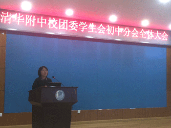 随后,邱晓云、陈冬梅两位年级组长分别对初中学生会的成立表达了期待,同时也对新一届学生会自身建设方面提出了要求。邱晓云老师对学生会成员提出了“三个义不容辞”的要求:一是义不容辞的打造自我,让自己成为一个学习成绩优秀、有责任、有担当的人;二是义不容辞的为班级服务,学生会的干部都来自于不同的班级,要在班级活动中起表率作用;三是义不容辞的为年级服务,年级人数的增多增加了年级活动开展的难度,学生会的干部要自觉服务于年级活动,努力成为年级的好助手。陈冬梅老师用“三心二意”表达了自己对学生会成员的希望与鼓励,她希望同学们能拥有责任心、勇敢的心和童心“三心”,不仅要认真负责、勇于承担,更要保持一颗纯真的童心。她要求同学们在工作中做到“两意”:与同学们保持一致,达成一个意见,学生会作为学生自己的组织,要真正切实的反应同学们的心声,为同学们服务;同时,要理解学校的意思,与学校和年级保持一致,在学生会这个平台上努力提高自身的综合素质。