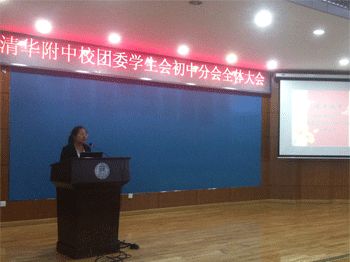 德育处副主任郎艳老师宣读了《皇冠体育2012-2013学年校团委学生会初中分会名单》,并向当选的学生会成员表示祝贺。