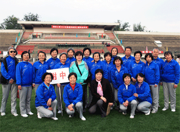 10月14日上午,清华大学离退休处在东大操场举行离退休教工2012年趣味运动会。附中老同志60余人参加了运动会。其中,20人组成的队伍参加了入场式和“八段锦”集体表演,50余人参加了各项比赛。